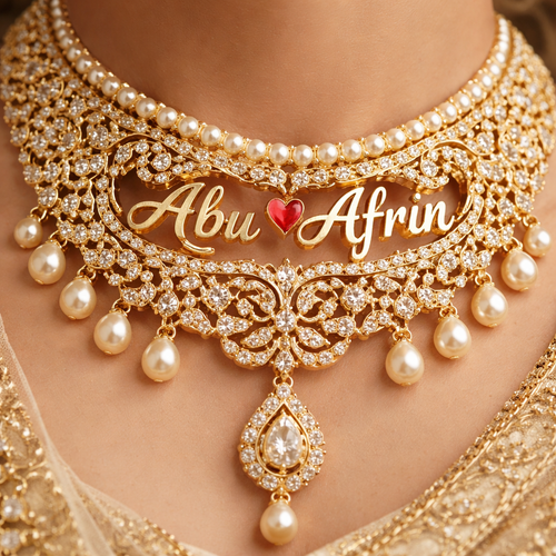 A classic women's necklace made of gold suitable for wedding. same model with this names Abu ❤️Afrin