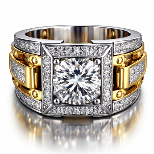 A luxury men's ring made of mixed metal with diamond stones suitable for birthday. ultra luxury combination of diamond a...