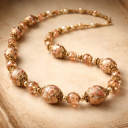 Build me a beaded necklace with peach colored cloisonné beads