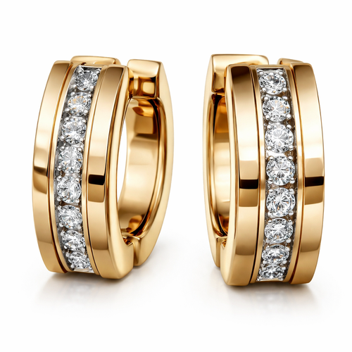 A men's earrings made of gold with diamond stones