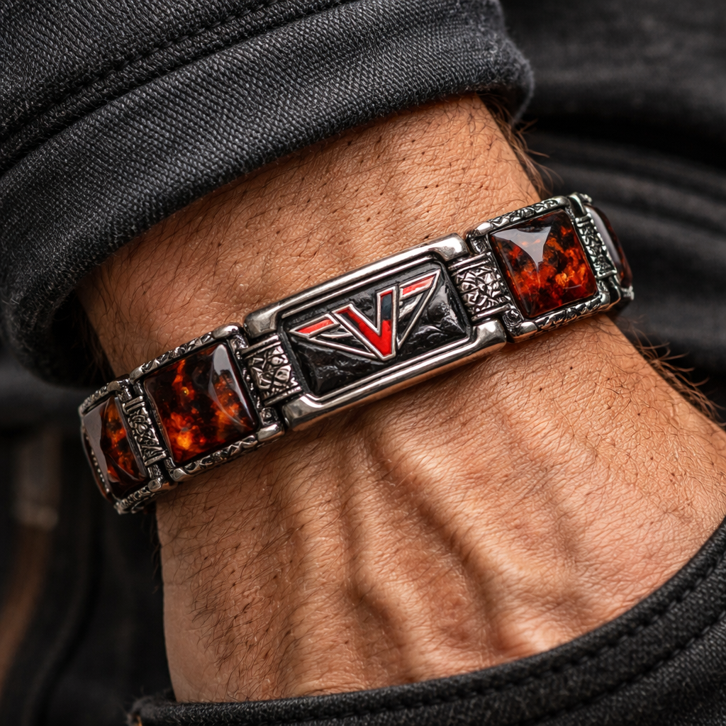 Only natural Ambers stone square bright red black colour man’s bracelet EVW sports logo arm