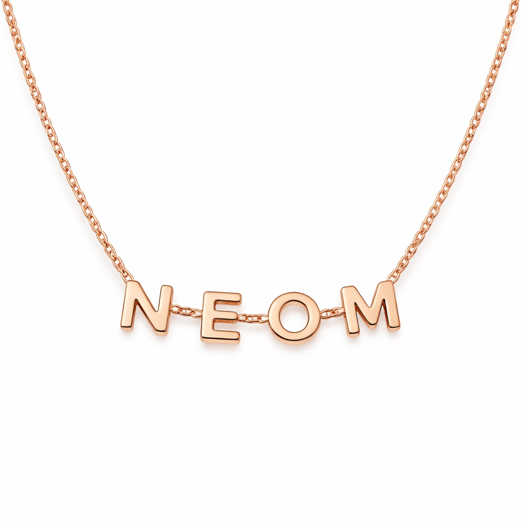 אני רוצה שרשרת ברוז גולד בשילוב אותיות באנגלית N,E,O,M שהשרשרת תהיה חלקה ללא התליונים שהוספת ושהאותיות יהיו מולחמות בצדדים בצורה אסתטית ולא עם לולאות