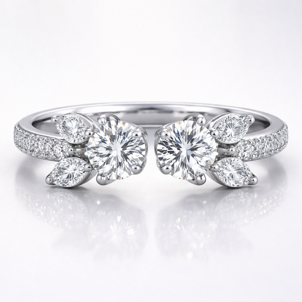 2 round 0.65ct opposite of each other with two marquise diamonds that looks like leaves on both sides