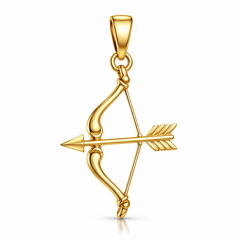 A men's pendant made of gold. A delicate yellow gold pendant use bow and arrow