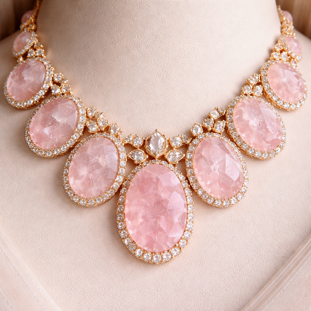 Diamond ring with a smooth heart-shaped stone. The ring is round and features small diamonds.