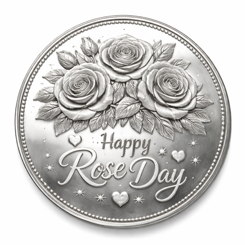 Silver coin with rose day wish and a suitable picture