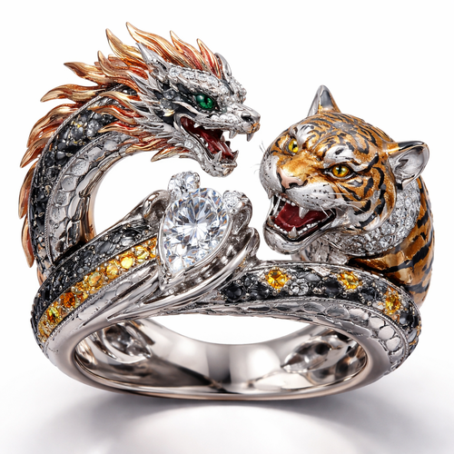 A women's ring. Обручальные кольца для него дракон и для неё тигр