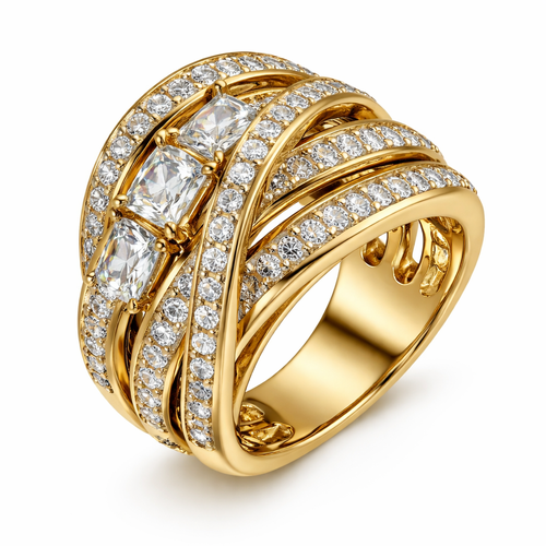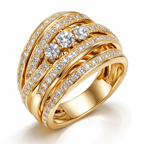 A modern women's ring made of gold with diamond stones. وزن القطعه ٢٥ أكبر شوي من هاذي