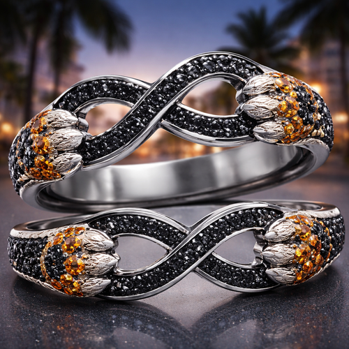 Infinite symbol solid bracelet that filled with black diamonds with city of cocoa palm trees and solid thick tigers paw...