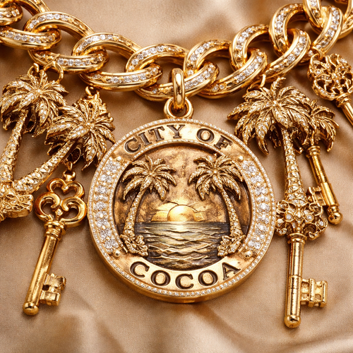 City of cocoa bracelets that has keys and palms trees heavy pure gold