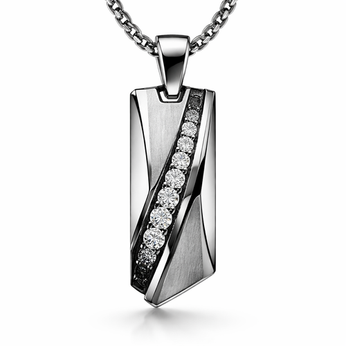 A modern men's pendant made of silver with diamond stones