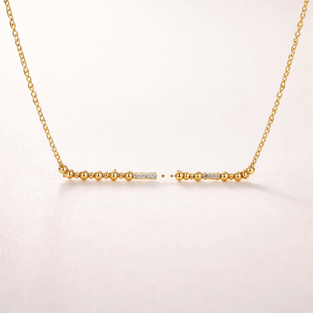 A women's ring. un colier fin avec un mot secret écrit en morse exemple de mot courage, modern style