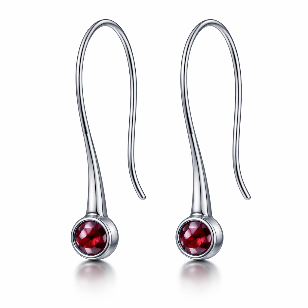 A minimalist women's earrings made of silver with garnet stones, minimalist style