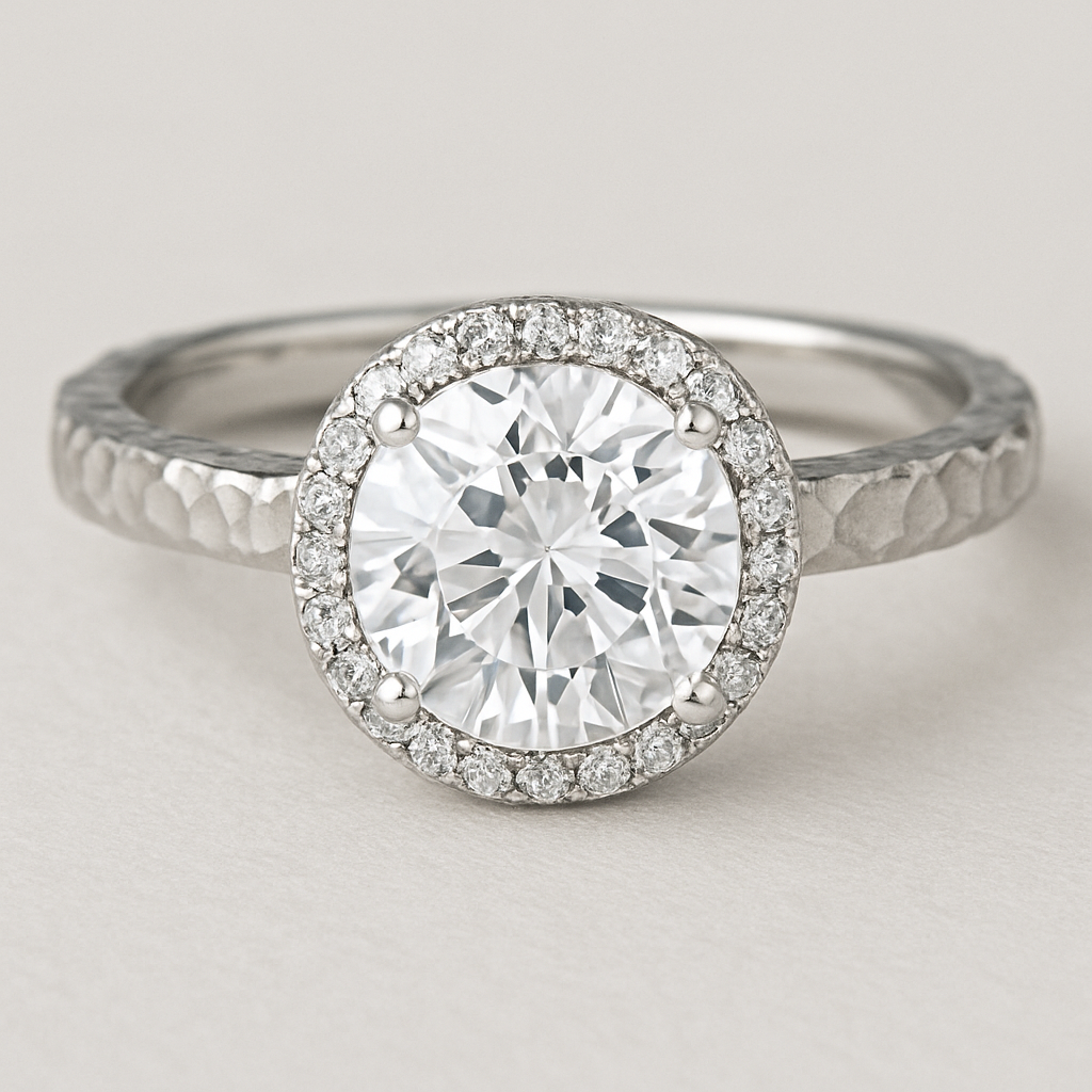 3 carat round halo with a textured band