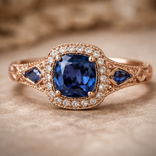 A vintage women's ring made of rose gold with sapphire stones suitable for engagement