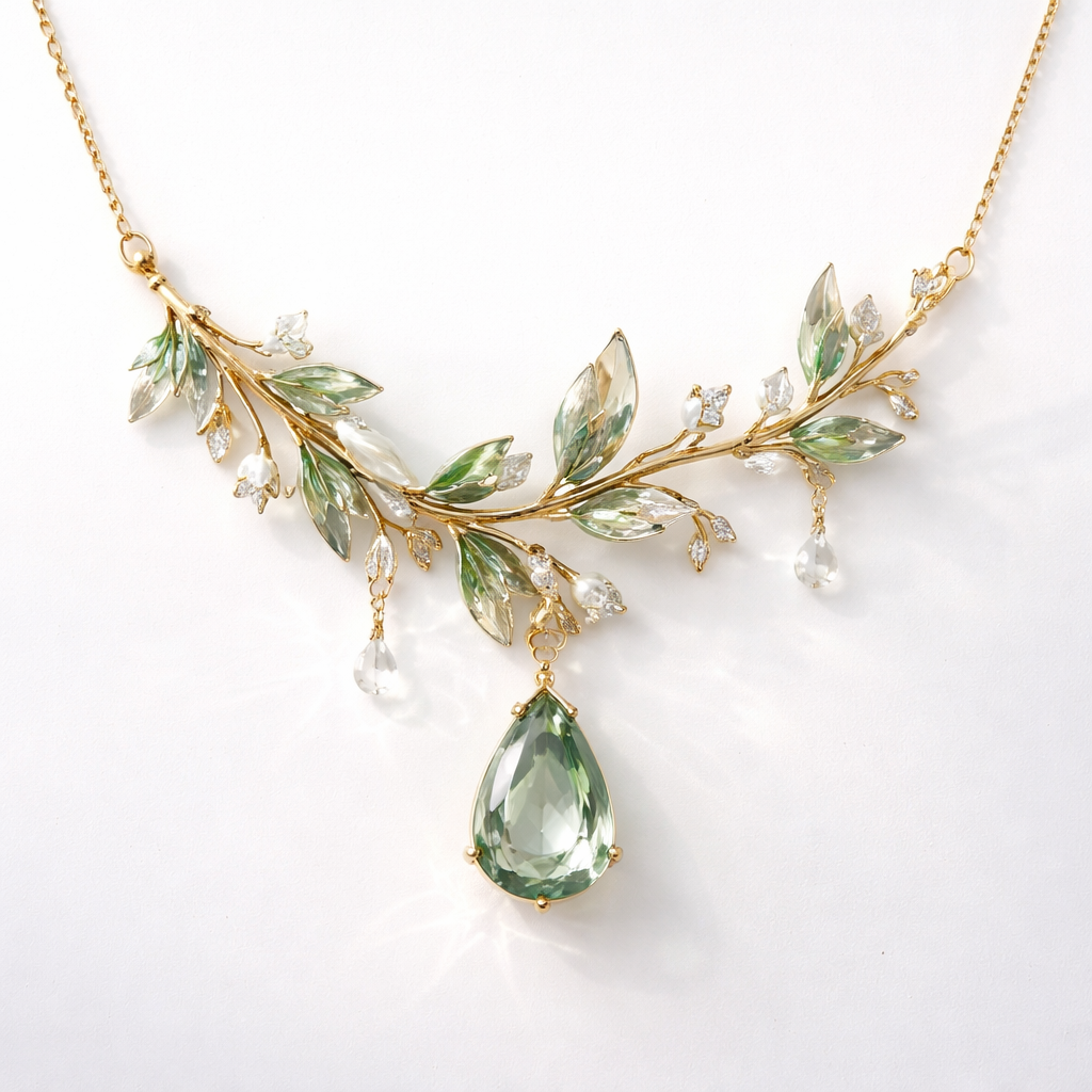 A beautiful necklace with a hint of a natural like slyle , modern style