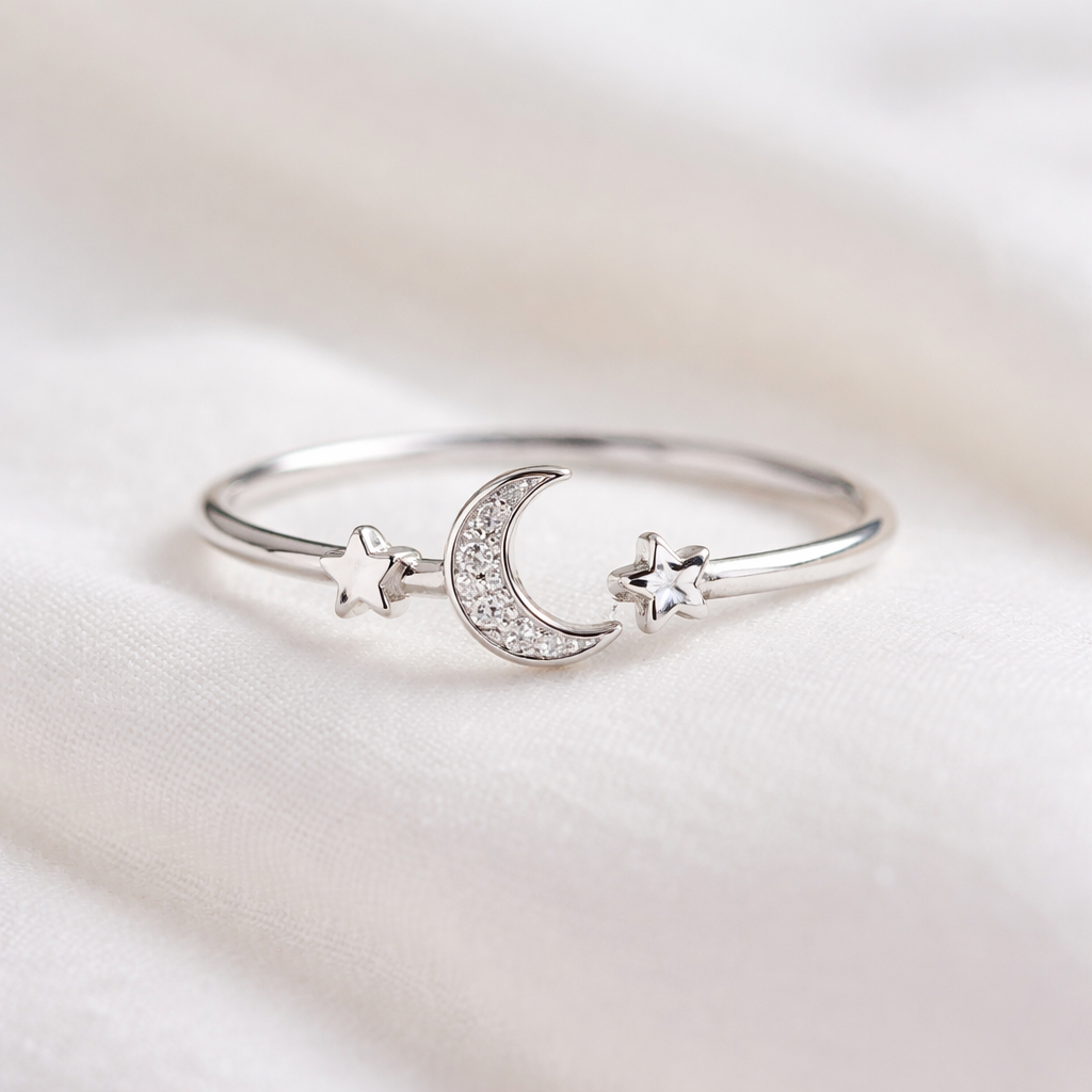 Silver ring with stars and moon