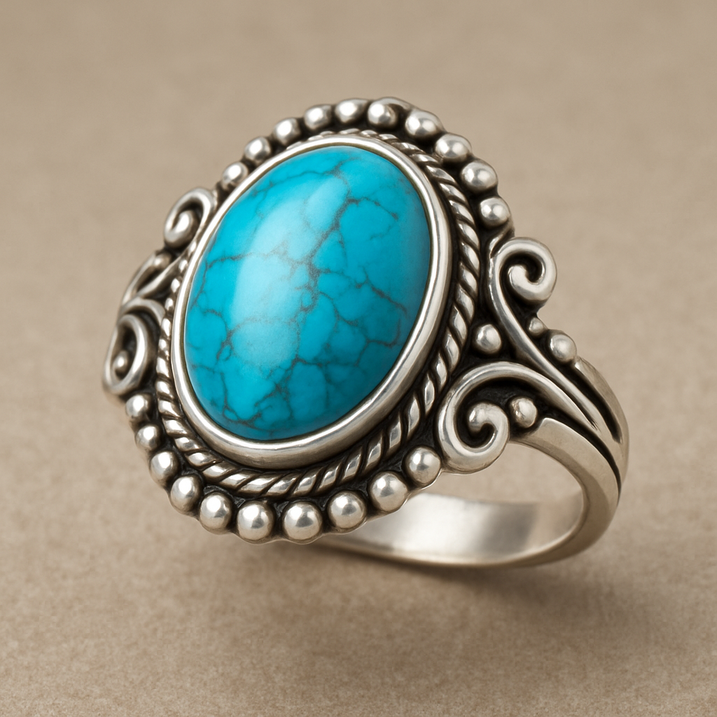 Create a flower style ring with the center stone being an oval three-quarter carat with large round stones, creating the...