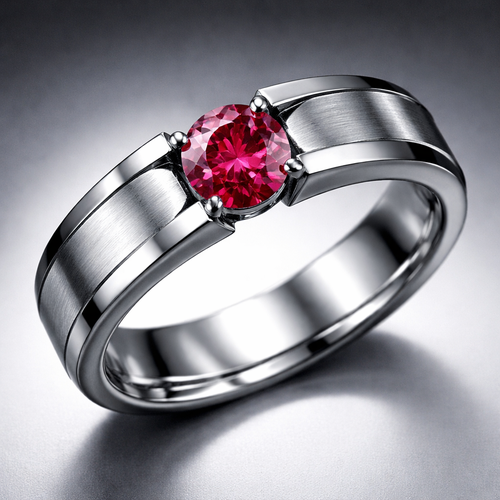 A stainless steel ring with a shining beautiful ruby in the middle
