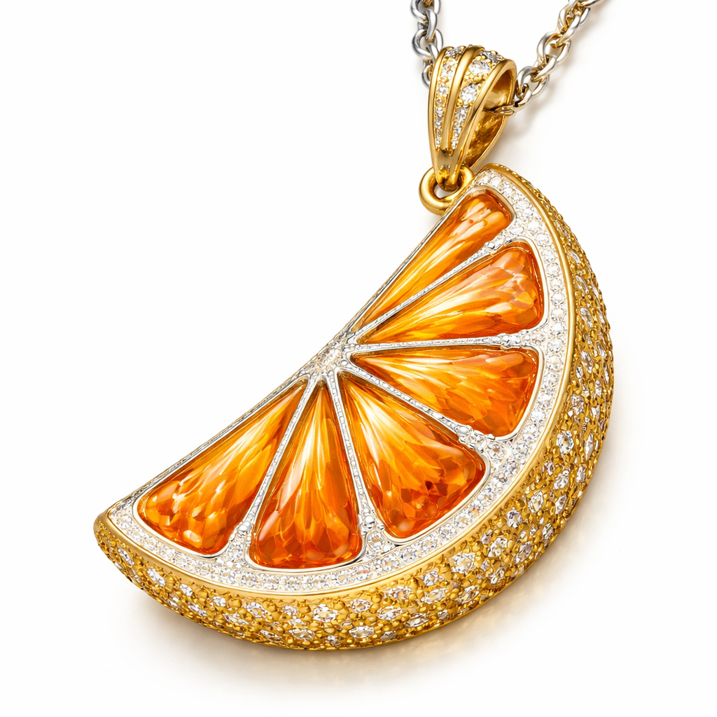 A jewelry that make from gold and silver and it looks like slice of orange