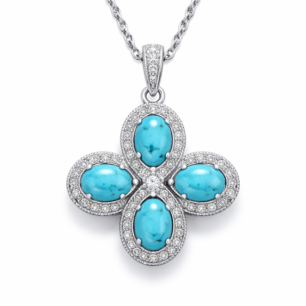 Four 6x4 calibrated oval turquoise cabochons set in silver pendant