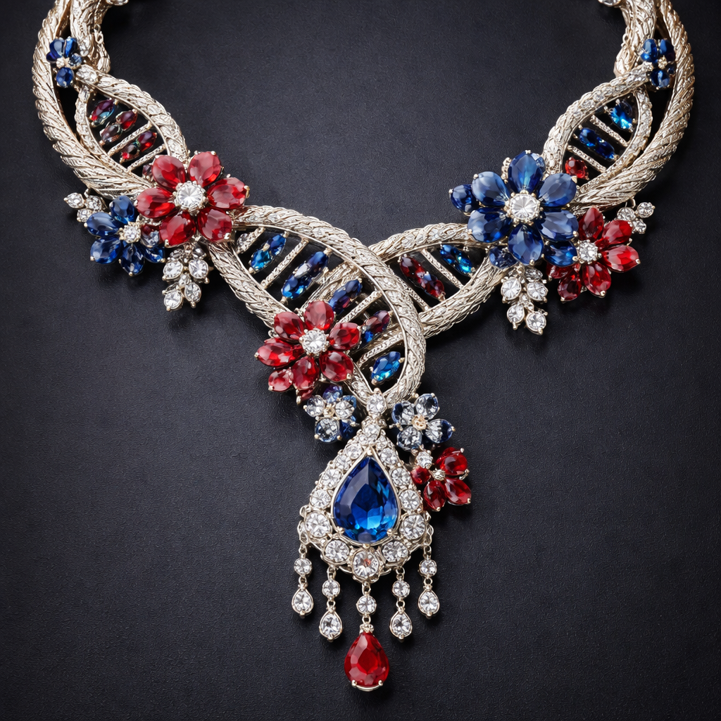 Twisted rope with dna helix strand flowers and white gold sapphire red ruby diamond