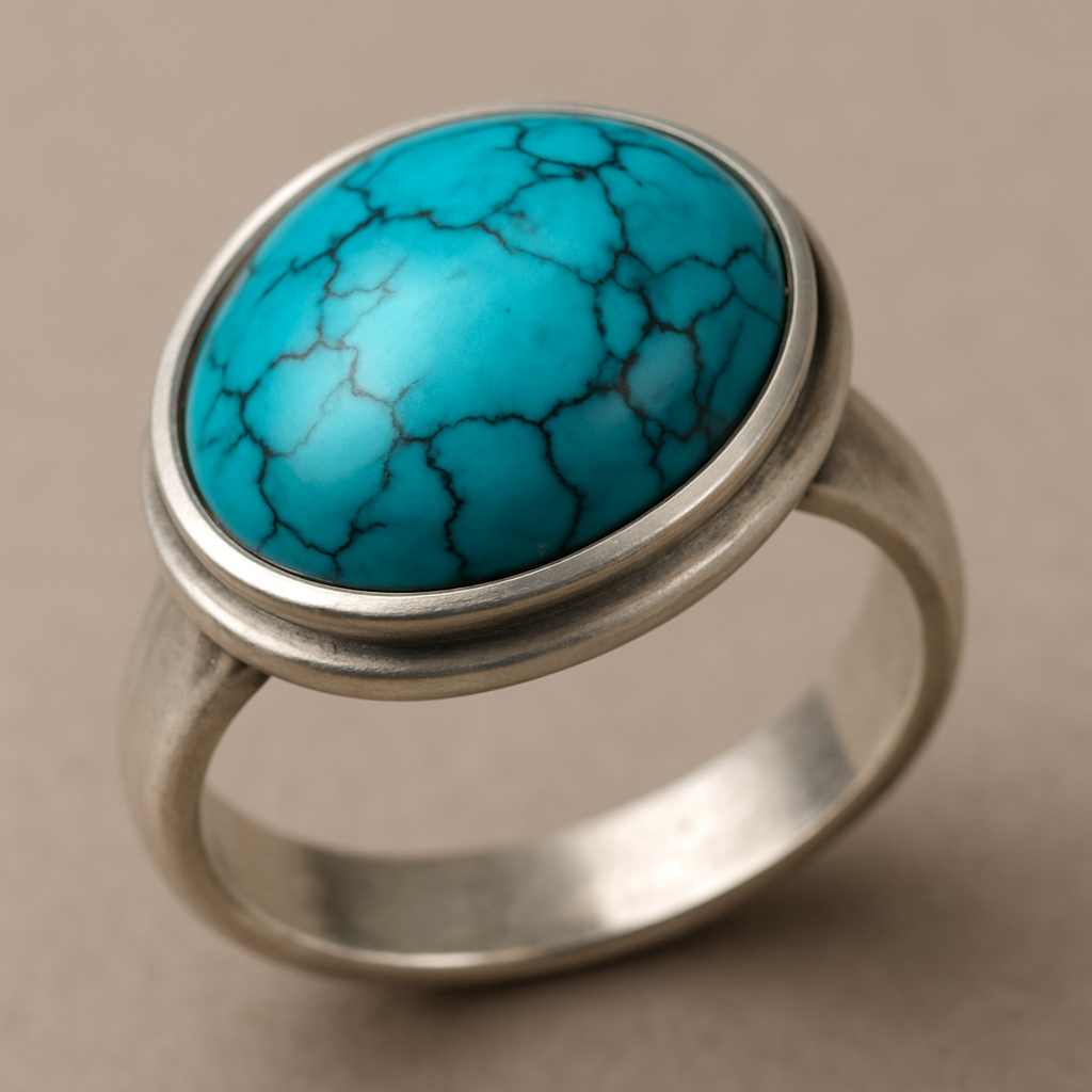 Diamond ring with a smooth heart-shaped stone. The ring is round and features small diamonds.