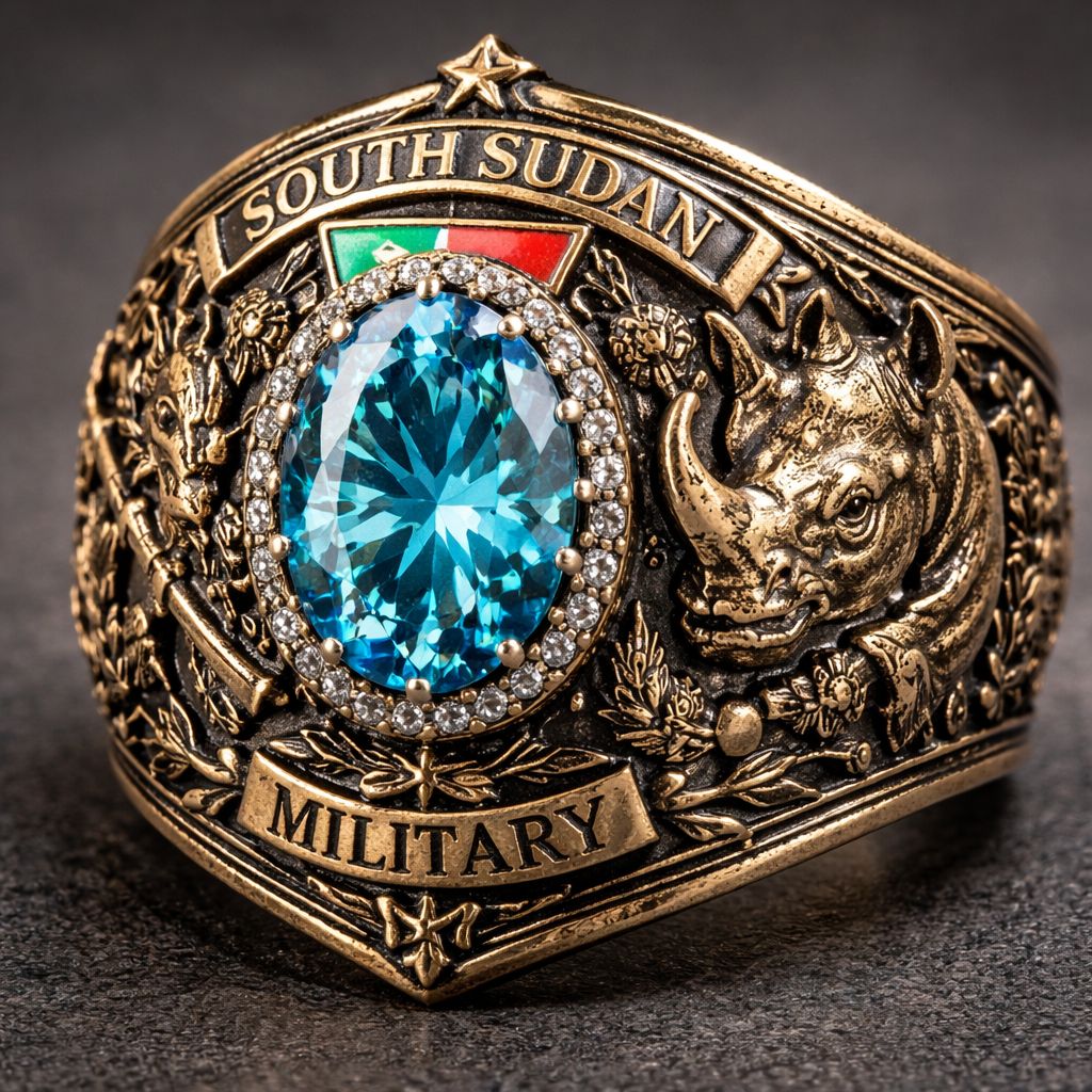 Ring south soudan Militär Symbole Nashorn Blue Diamond Ring