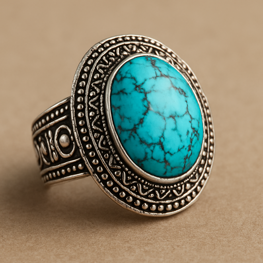 Turquoise cabochon on silver ring, african style