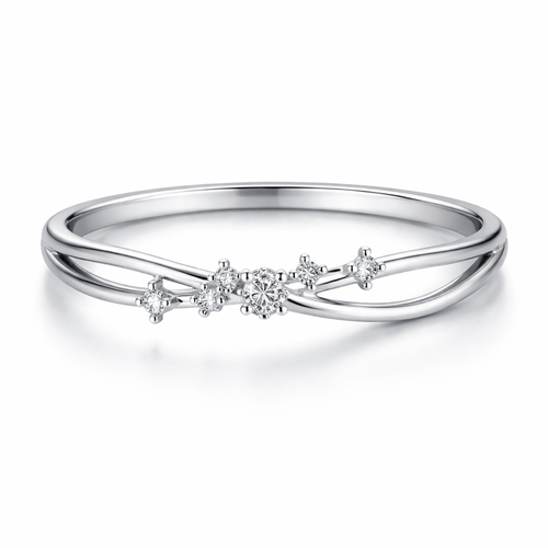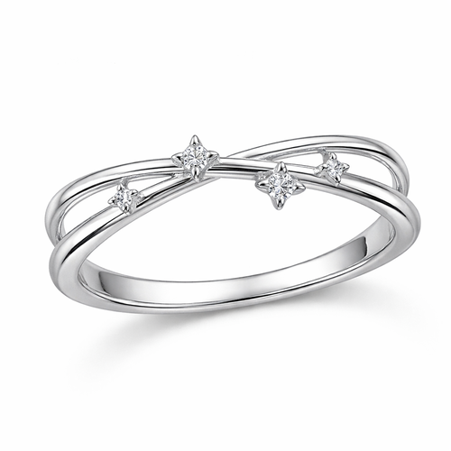 A minimalist women's ring made of silver with diamond stones suitable for daily wear. anel com linhas e estrelas