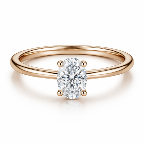 A modern women's ring made of rose gold with diamond stones suitable for engagement. . ..oval cut diamond with just the ...