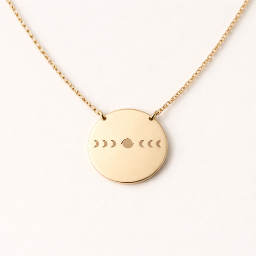 A minimalist women's necklace. colar redondo com as fases da lua