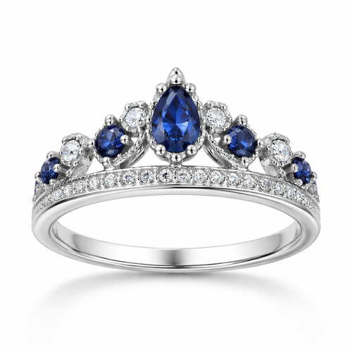 A women's ring made of silver with diamond and sapphire stones suitable for daily wear. anel em estilo coroa