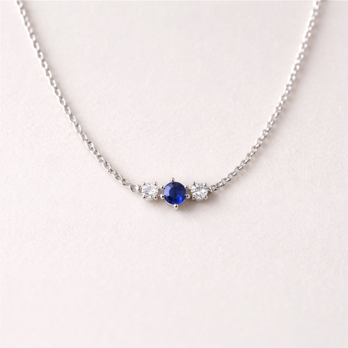A minimalist women's necklace made of silver with diamond and sapphire stones suitable for daily wear