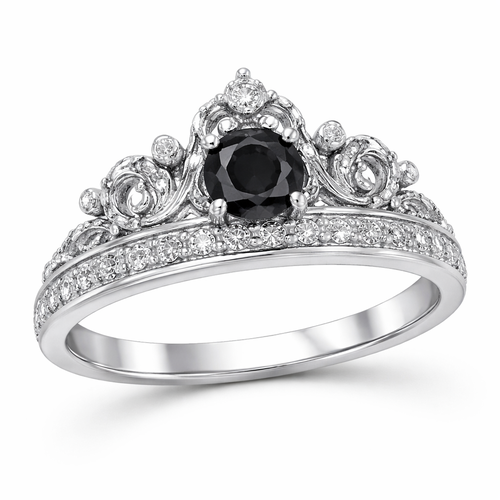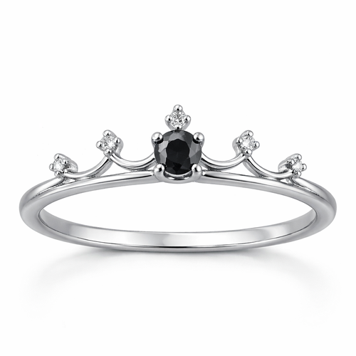 A classic women's ring made of silver with diamond stones suitable for daily wear. estilo coroa com pedra central preta