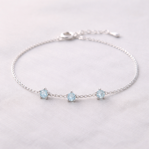 A minimalist women's bracelet made of silver with aquamarine stones suitable for daily wear. pulseira com pequenas estre...