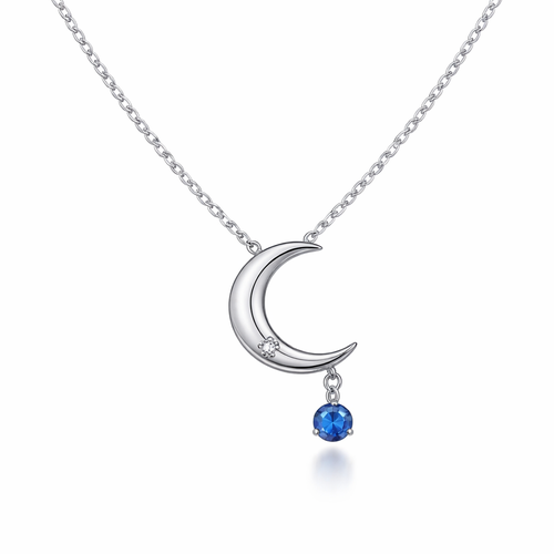 A minimalist women's necklace made of silver with diamond and sapphire stones suitable for daily wear. colar com lua e u...