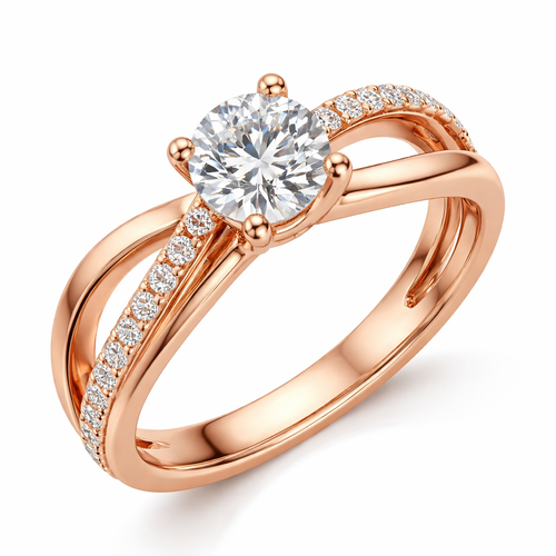 A modern women's ring made of rose gold with diamond stones suitable for engagement