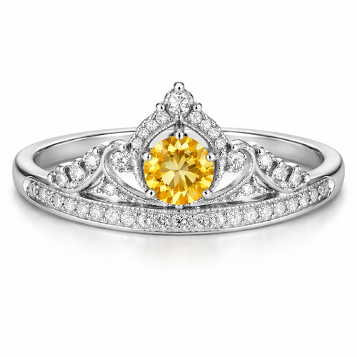A classic women's ring made of silver with diamond stones suitable for daily wear. estilo coroa com pedra central citrin...