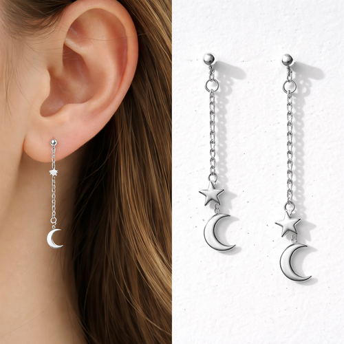 A minimalist women's earrings made of silver suitable for daily wear. brinco com estrelas e luas