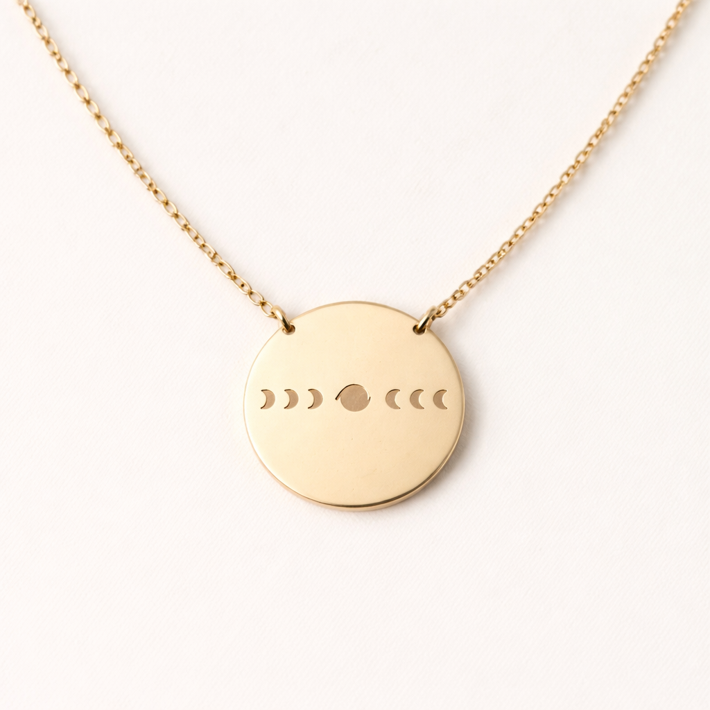 A minimalist women's necklace. colar redondo com as fases da lua, minimalist style
