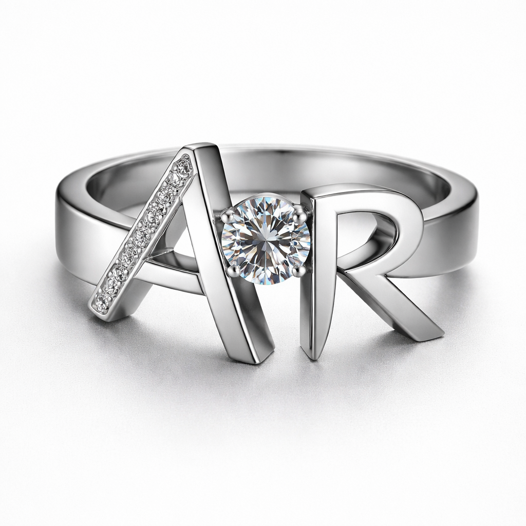 A women's ring. proposal ring , but she isn't that much a girly pop I want to have letters A and R made into it, modern style