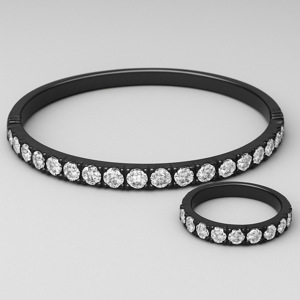 Schwarzes Armband mit weißen Diamanten ca 0,5cm dich mit passendem Ring