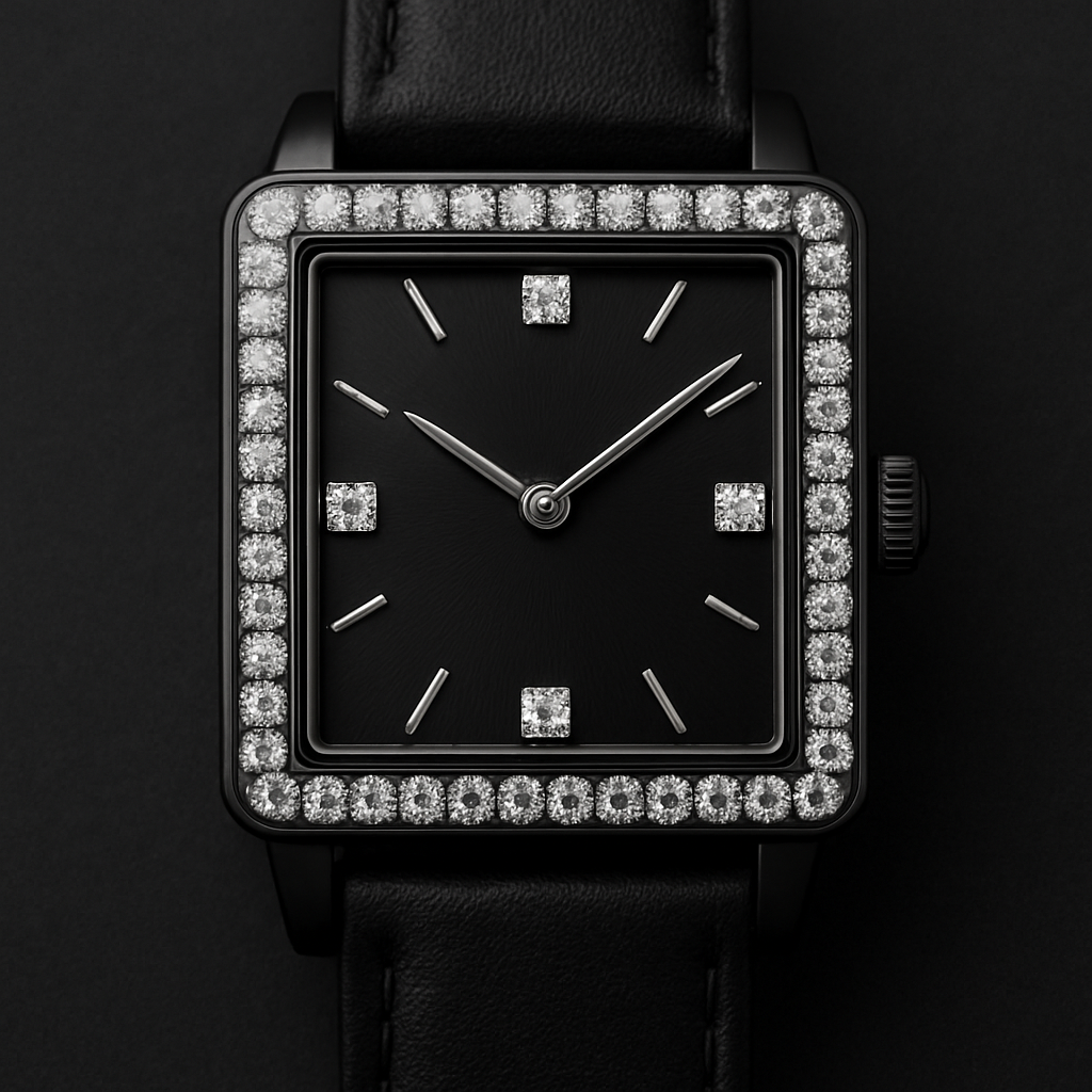 Uhr eckig in schwarz mit weißen Diamanten eckig luxeriös