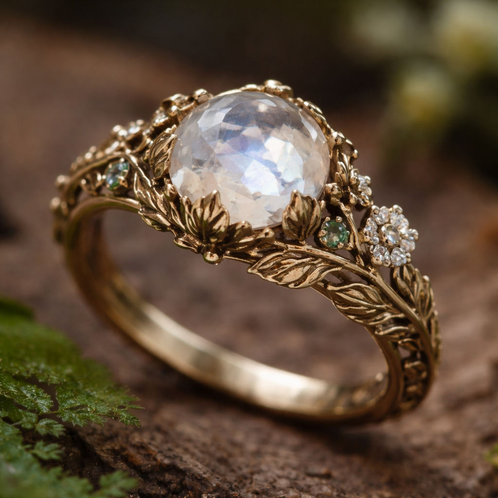 I want a gold ring with a nice diamond on the top. It should be good to be an engagement ring and have some cool stuff o...