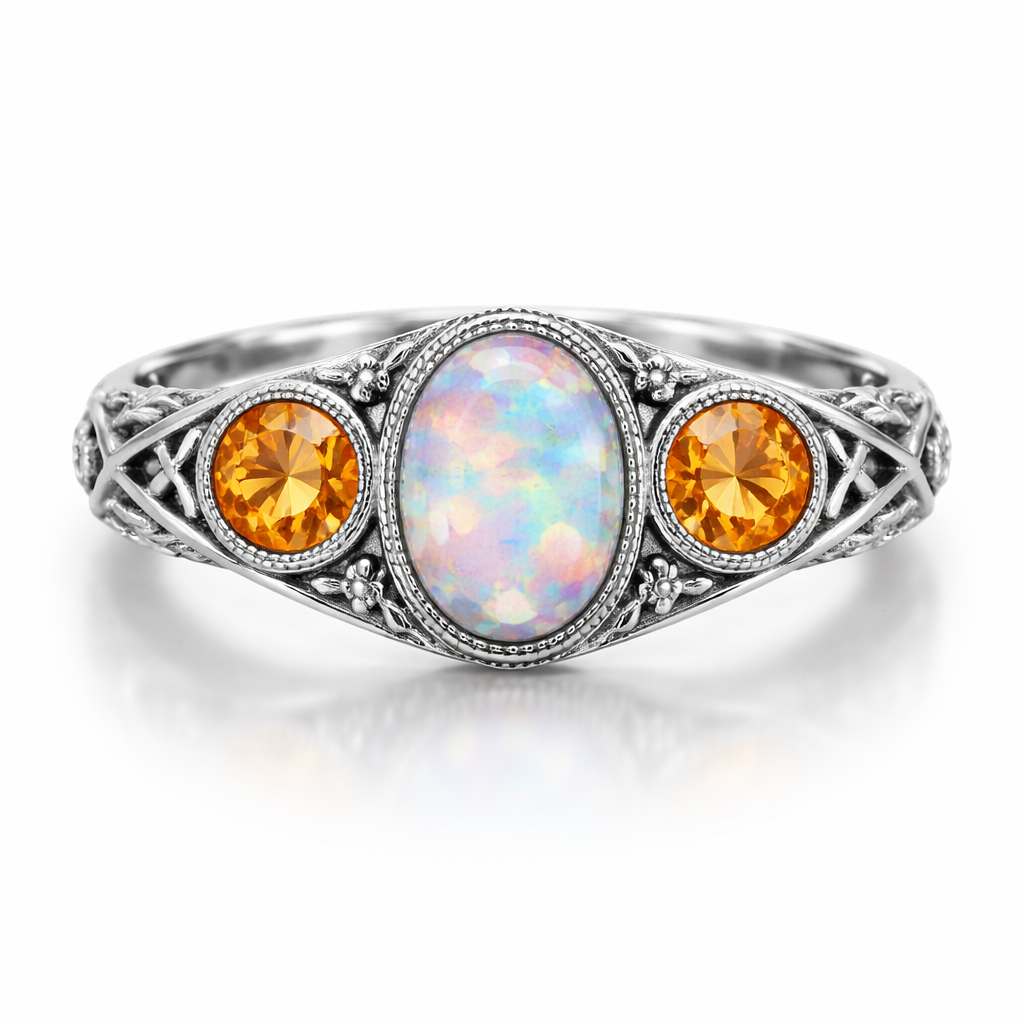 Create a flower style ring with a three-quarter carat oval center, stone and diamonds surrounding in a halo of individua...