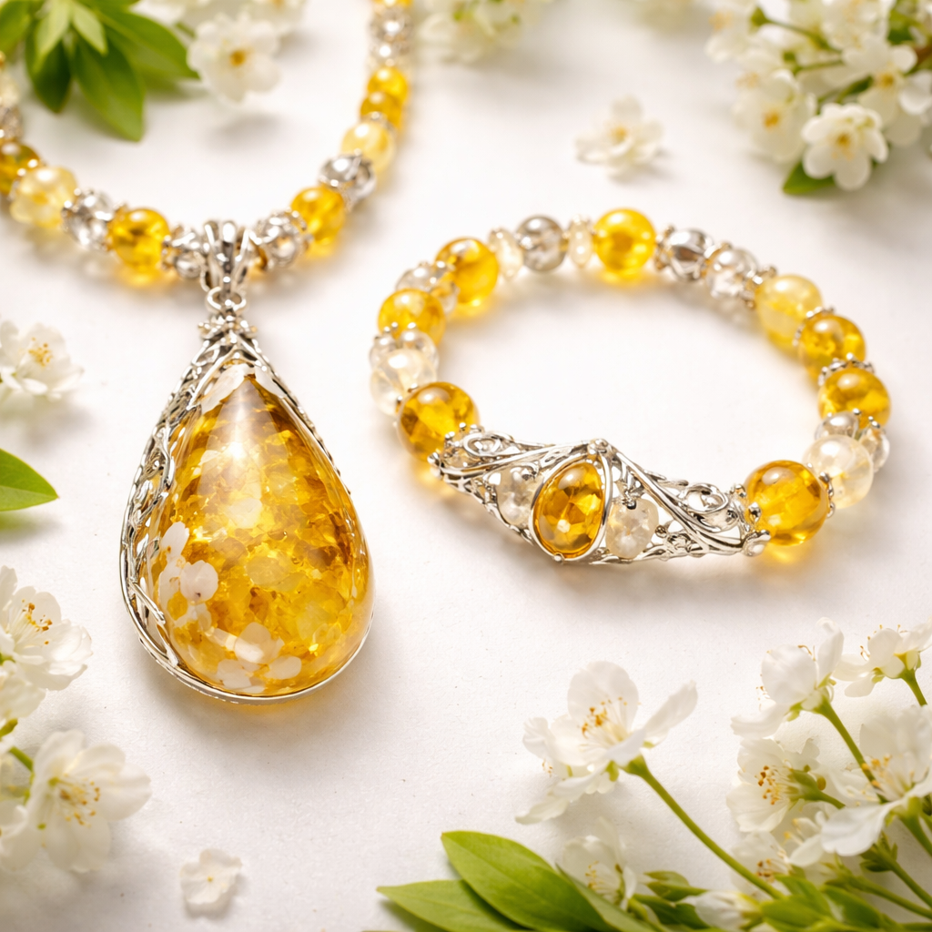 Tik gintaro medziaga karolis ir apyrake moteriai, geltona balta su idomiu dizainu nenaudoti spalvotoju metalu pavasarines nuotaikos