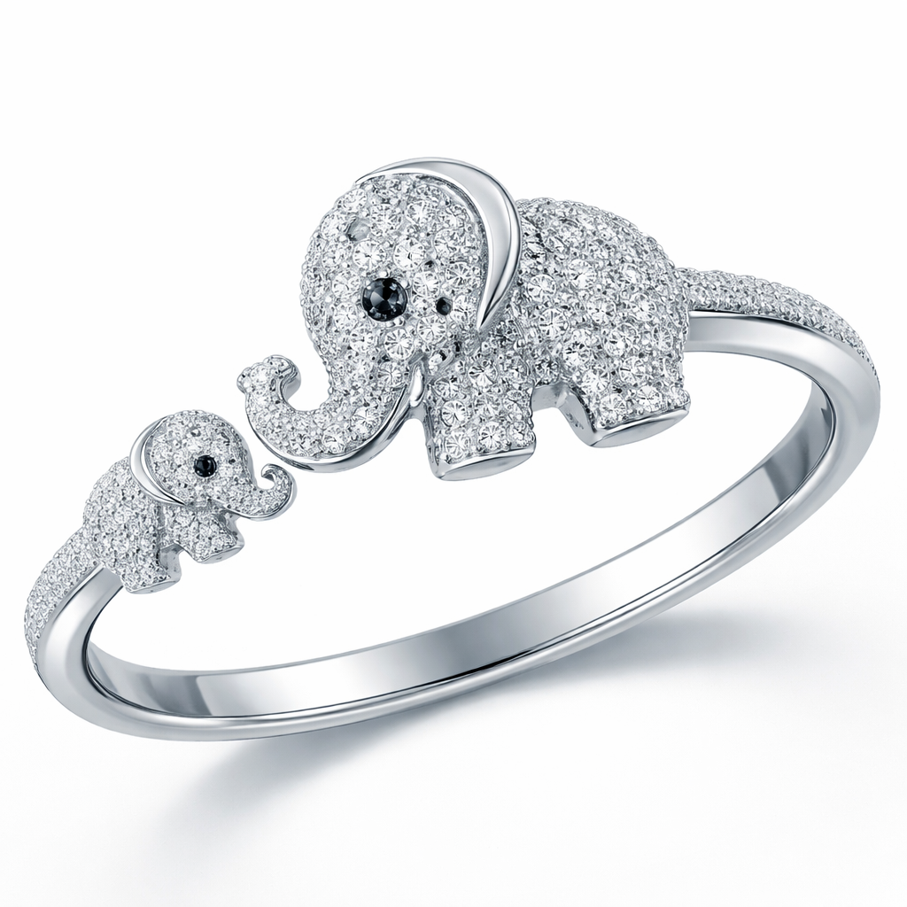 Un brazalete para mujer de elefante que se que se ensamblar un grande y un pequeño 12mm y 8m con diamantes de plata 925
