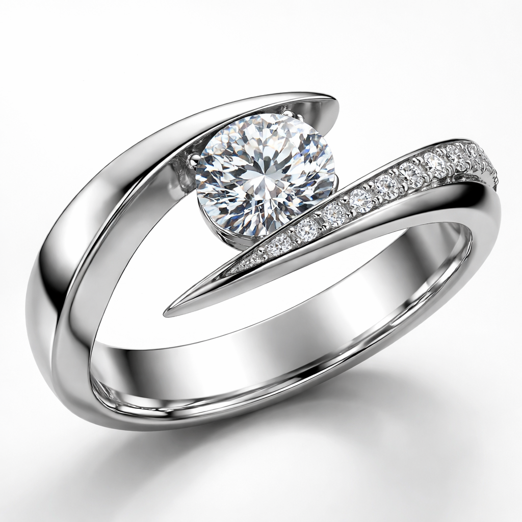 A women's ring made of white gold with diamond stones. Make an orchid ring design like the one above with a softer versi...