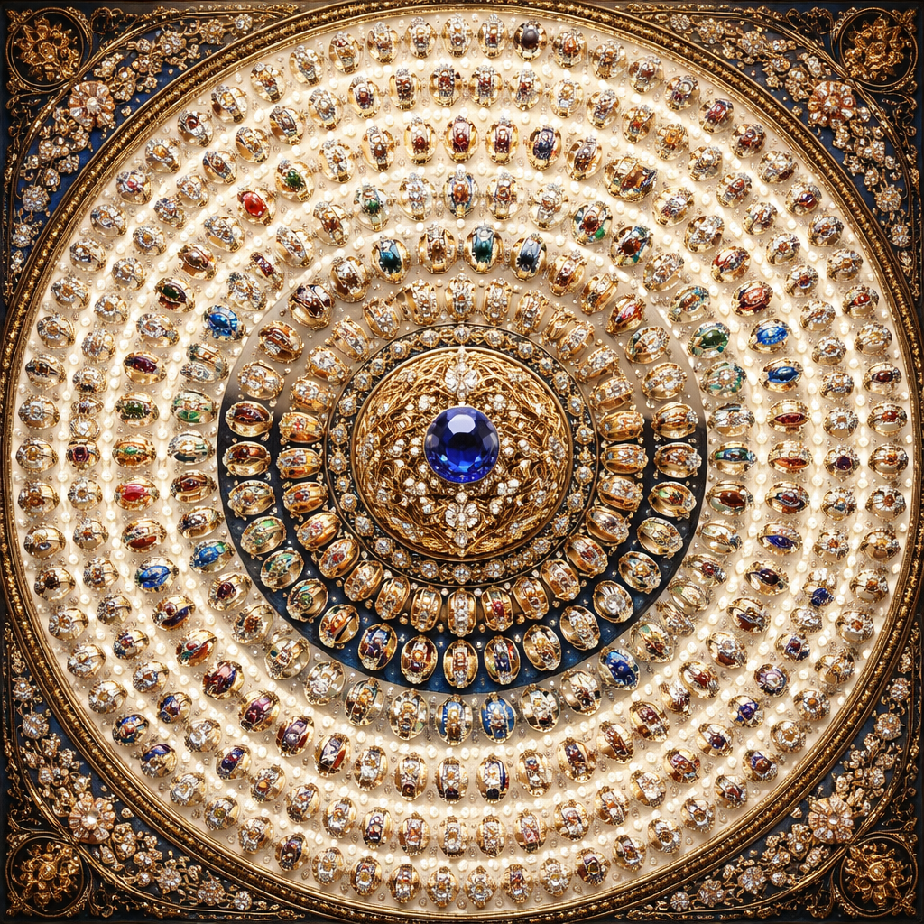 A ring chart with over 1000 rings with all kinds of styles, beauty and placed in a certain order, royal style